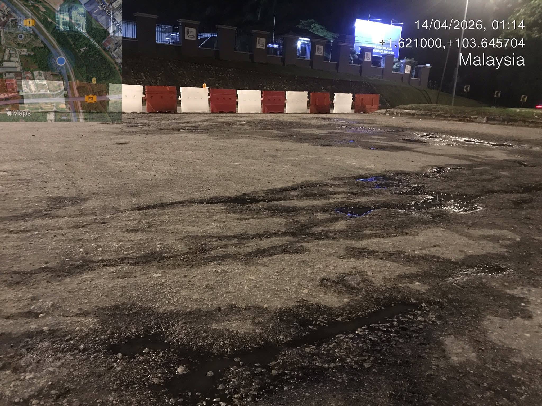 早前报导指出,该路口于今年1月曾修铺,由于不堪重型车辆频繁碾压,工程“寿命”仅维持一天,24小时后路面再度变得坑坑洼洼。