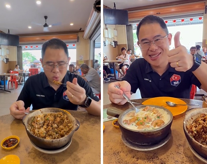 (峇株巴辖18日)5令吉砂煲鸡饭、砂煲鱼头米粉,行政议员阿顺赞:“料多又好吃!”