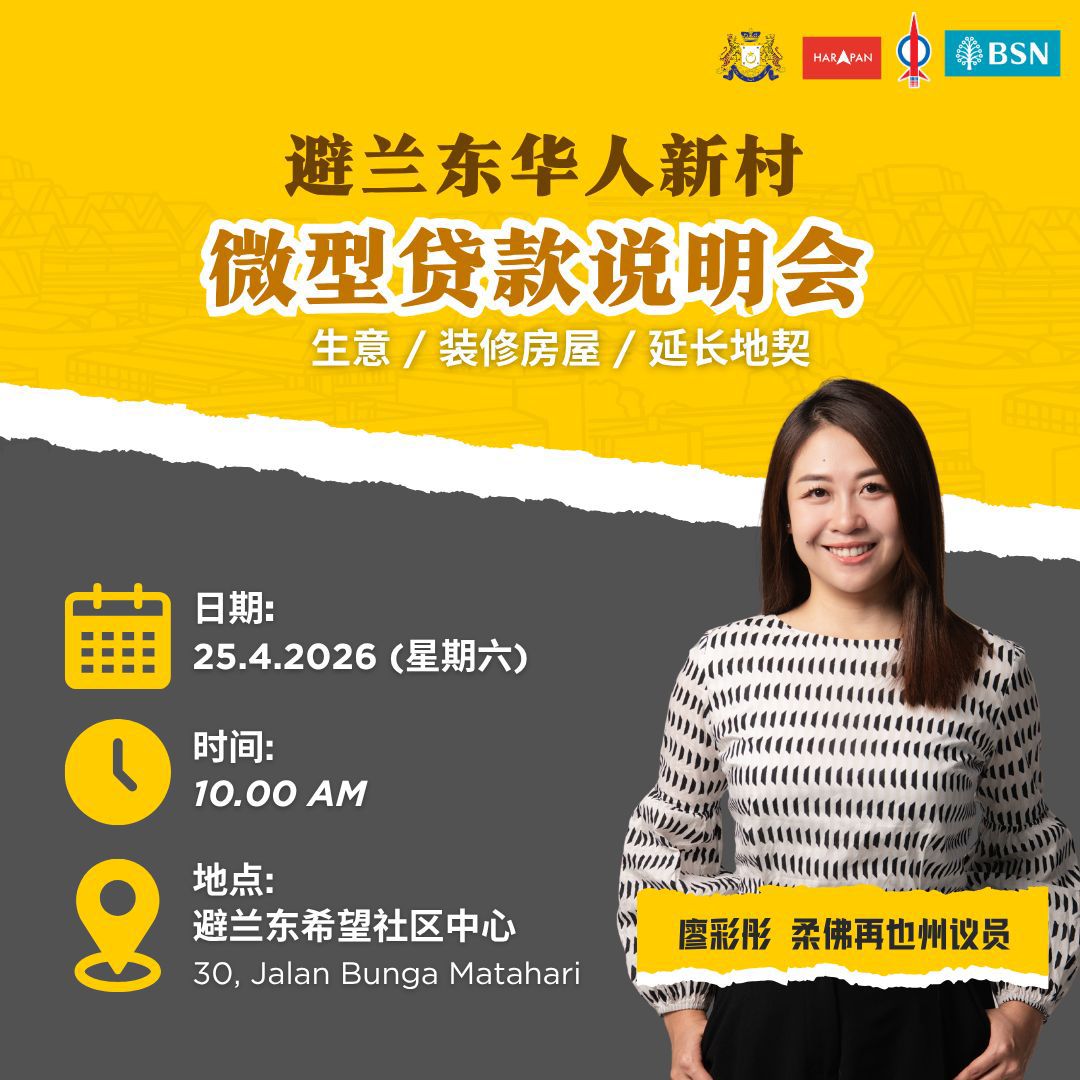 柔佛再也州议员办公室与新山县新村发展官及国家储蓄银行 (BSN) 职员,举办一场关于华人新村微型贷款 (PKBC) 的政策说明会,入场免费。