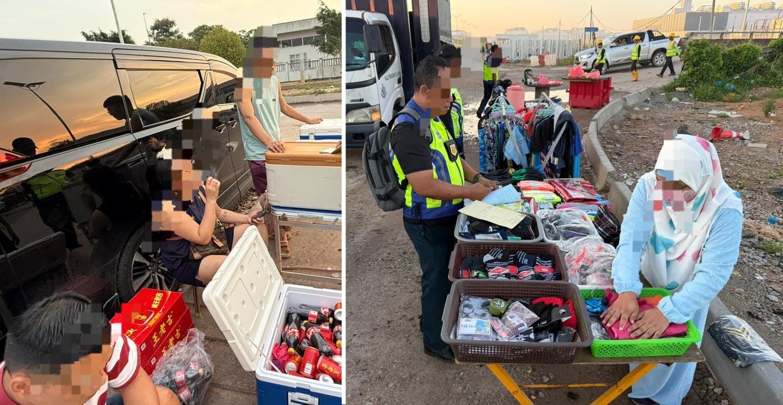 由于业者无法出示营业执照,执法组当场充公了所有违禁品及经营工具,连同该名小贩用于营运的车辆也一并扣押。