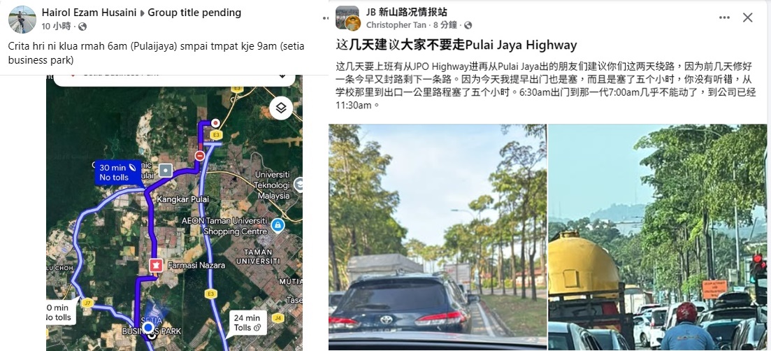 据悉,FT005笨珍至士姑来大道(Lebuhraya Pontian–Skudai)通往埔莱再也花园(Taman Pulai Jaya)路段的交通阻塞情况,日益严重。近一个月越来越多民众表达不满。