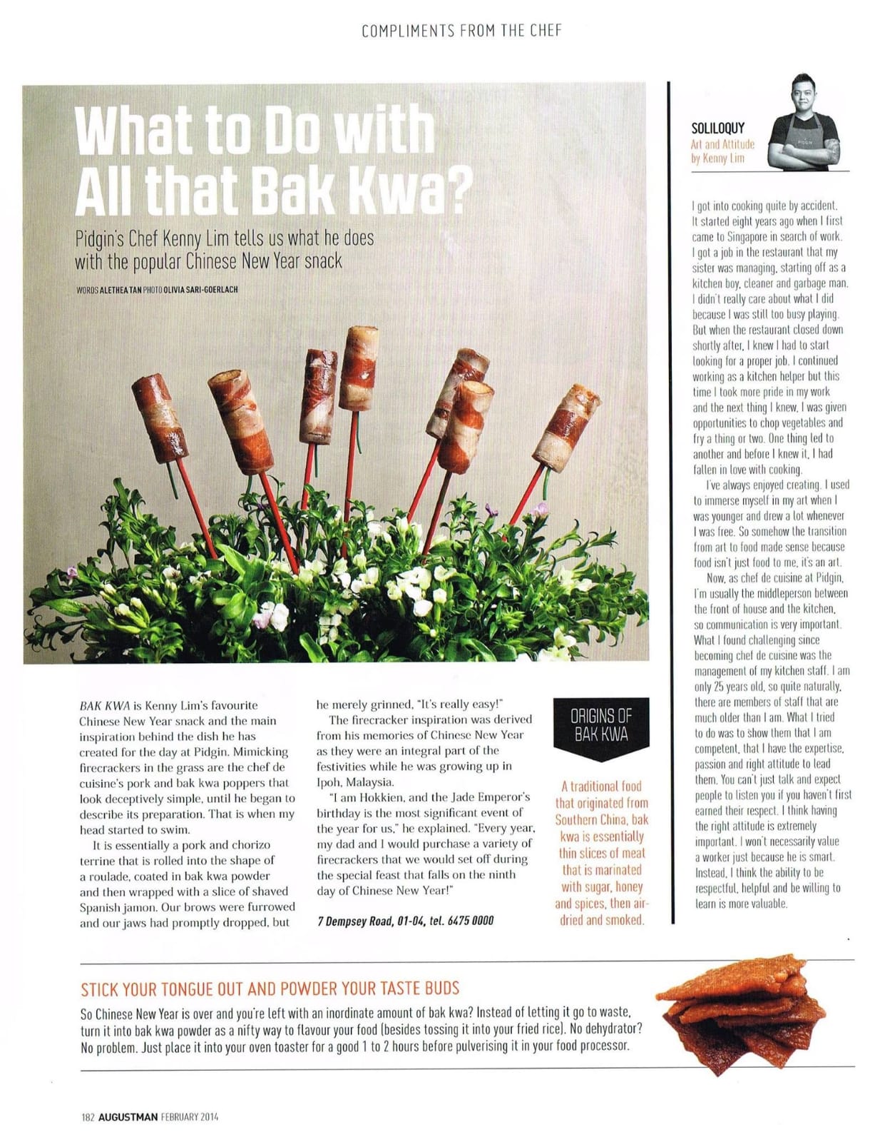 Kent也说,因为在任餐厅主厨时,会被要求经常更换新菜色,所以常从生活中找灵感,例如看见一只鸟撞上芒果树,便会用乳鸽配芒果成一道美食。