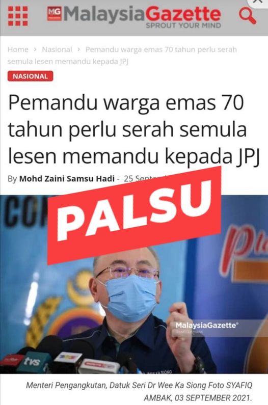 他强调,未曾指示70岁乐龄人士须退还驾照给陆路交通局,有关“70岁乐龄人士须退还驾照给陆路交通局”报导,是媒体的错误解读。