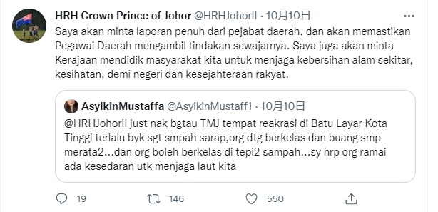 — HRH Crown Prince of Johor (@HRHJohorII) October 10, 2021