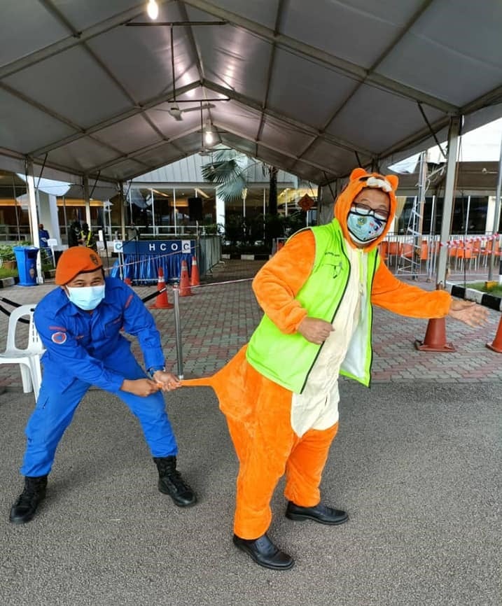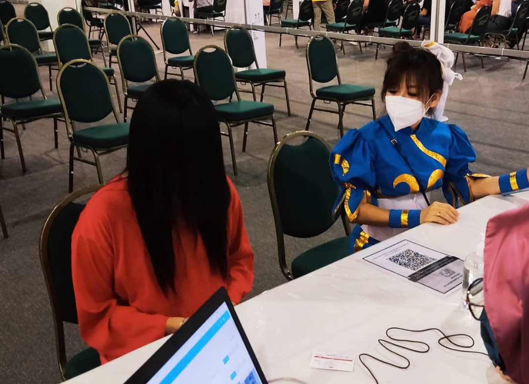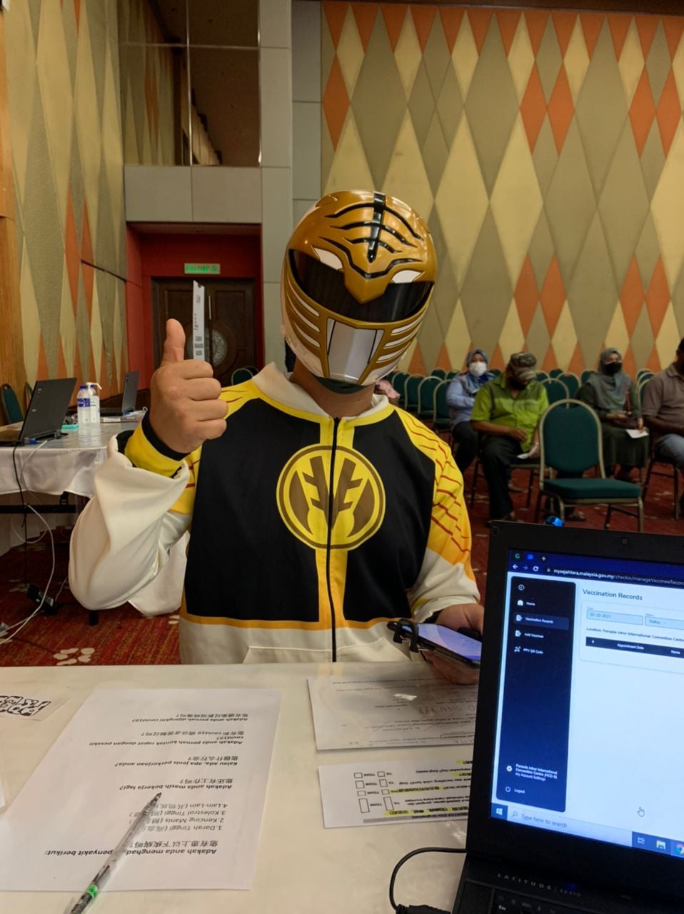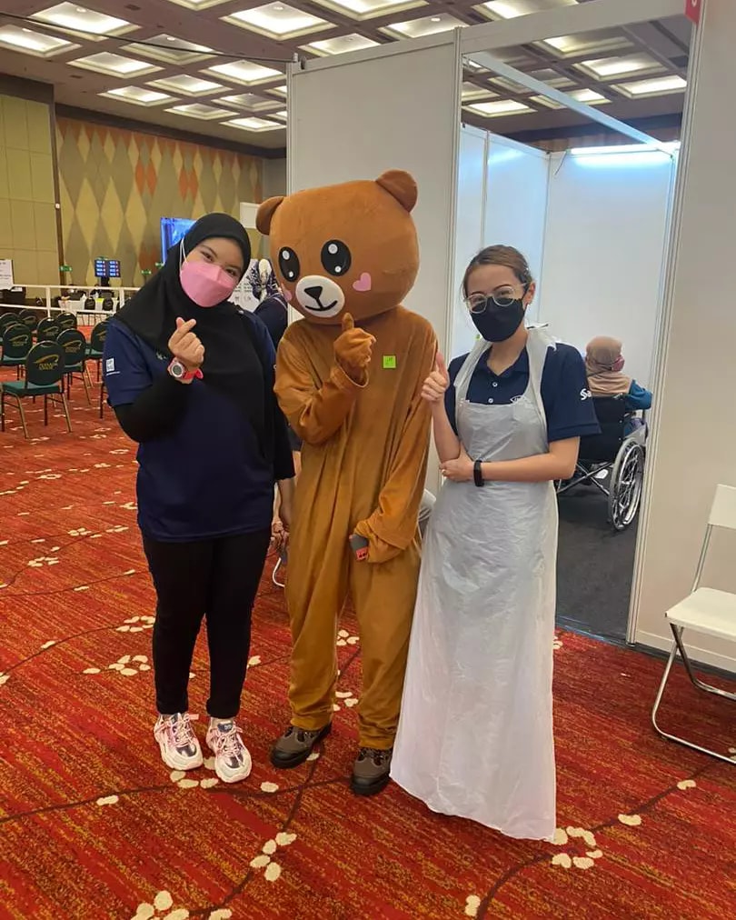 间中也有许多民众“扮鬼扮马”,以特殊的造型出现,来到Persada接种人生第一次的冠病疫苗,也留下值得纪念的画面。