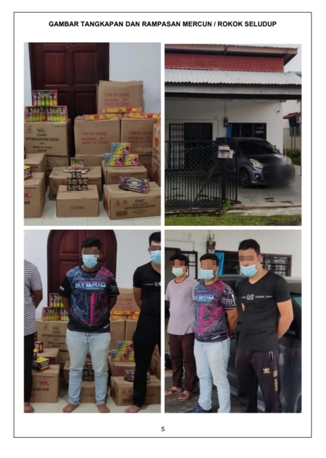 所有被逮捕和充公物全带到居銮警区,并援引1967年关税法令第135(1)条文、1957年爆炸物法令第8条文调查。