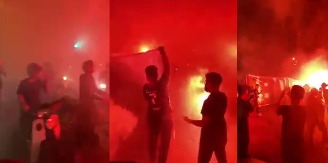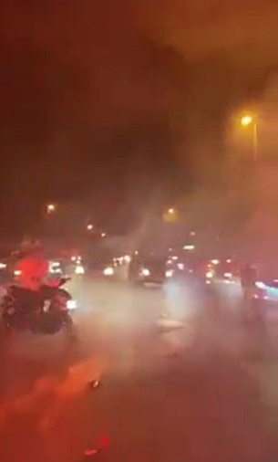 网上流传一视频,指昨晚在峇株巴辖巴力拉惹(Parit Raja),一群飙车党不停地踩油门,制造噪音,而且高调点火放烟,使到四周被染成一片红。