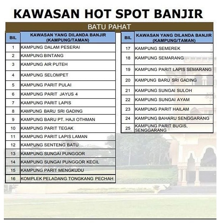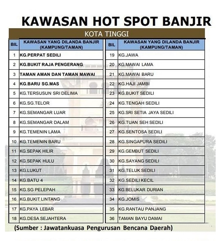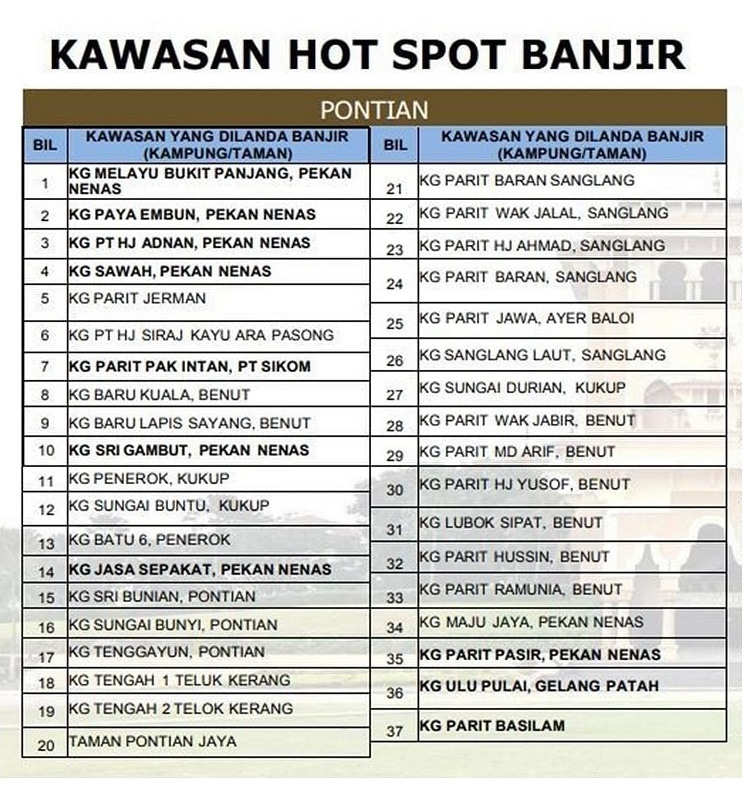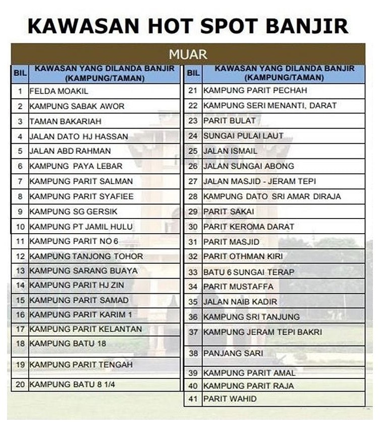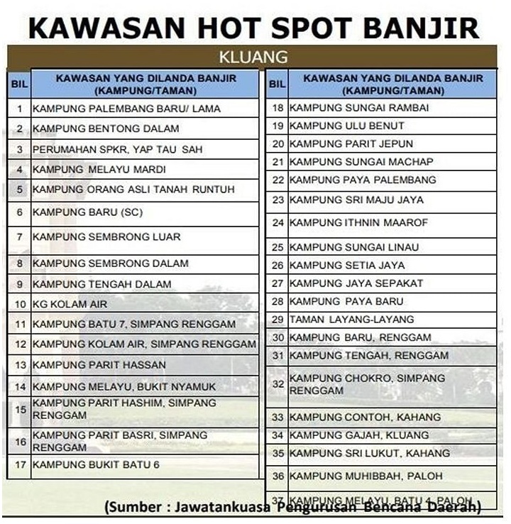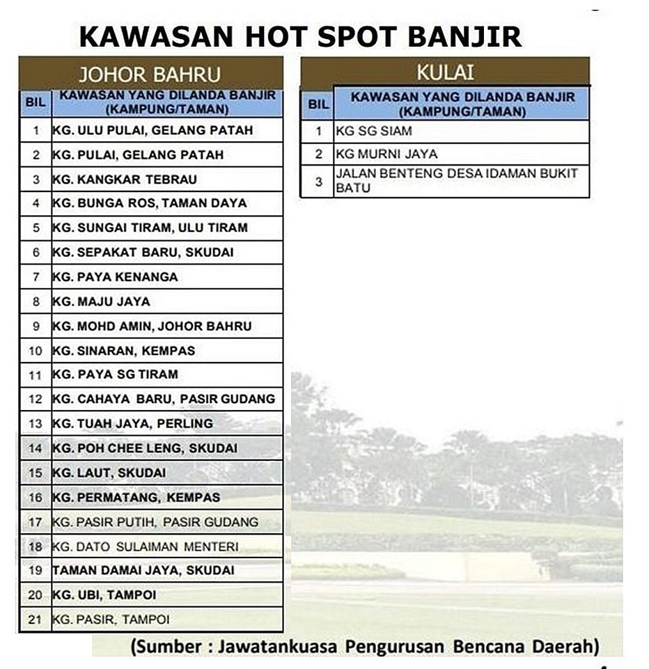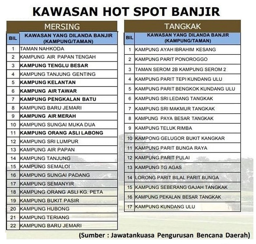 社会时事 全柔十县水灾黑区 麻坡最多 古来最少 2021 年 10 月 29 日2021 年 10 月 29 日 (新山29日) 又到年底雨季时,天灾管理委员会列出全柔十县水患黑区,麻坡最多41个,古来最少仅3个。 當局以甘榜和花園住宅區,例出有关水患黑区,相關数据如下: 麻坡:41个 昔加末:39个 居銮:37个 笨珍:37个 哥打:36个 峇株:25个 丰盛港:22个 新山:21个 东甲:17个 古来:3个 详情看图表↓↓↓↓ ↓↓最近新闻↓↓ 分享 Facebook Twitter Pinterest Linkedin
