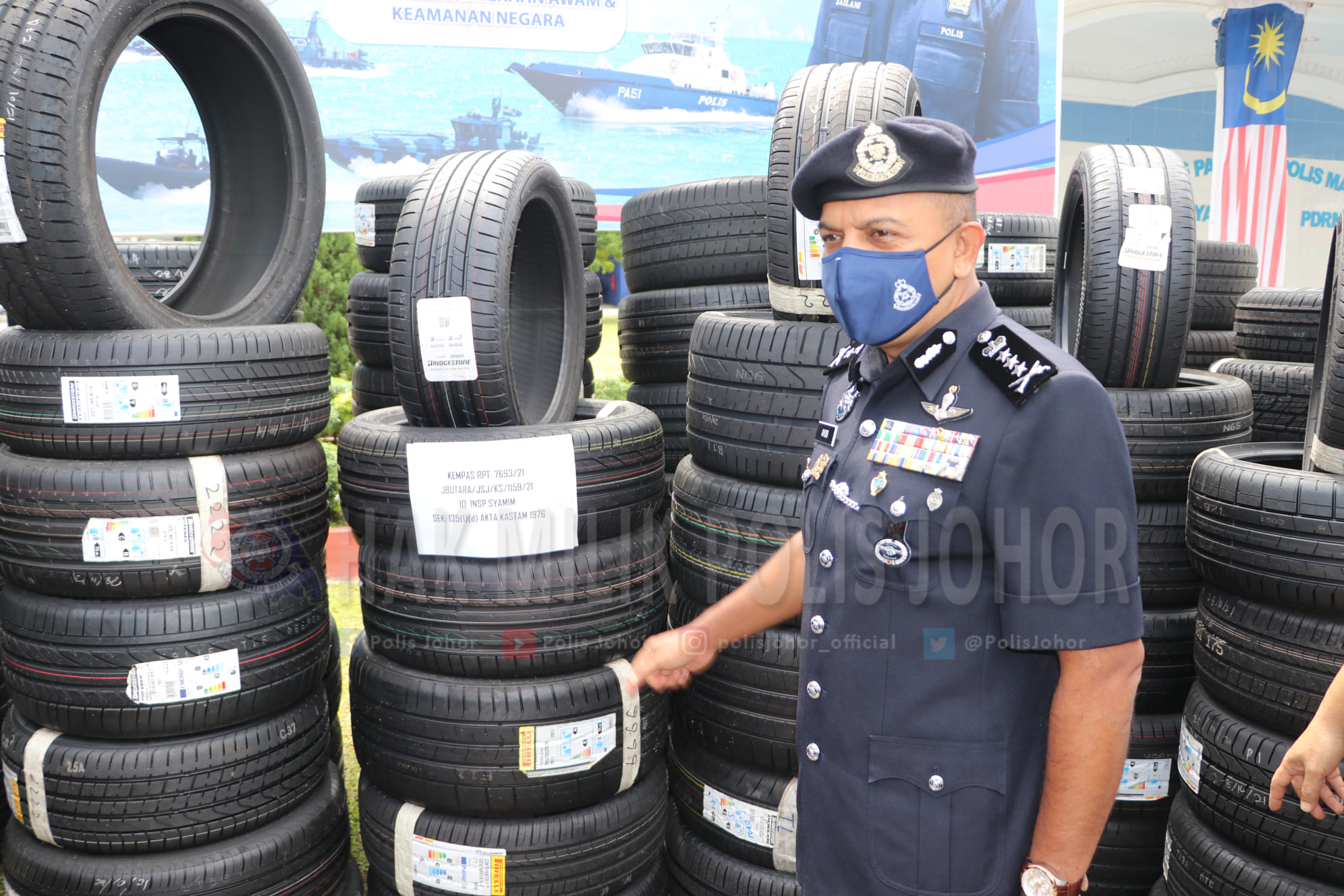 柔州警方展开追踪,揭露申报“空车”的可疑罗厘,竟载有727条总值近70万令吉的轮胎,且顺利从新加坡入境至我国。