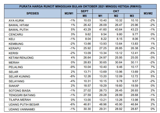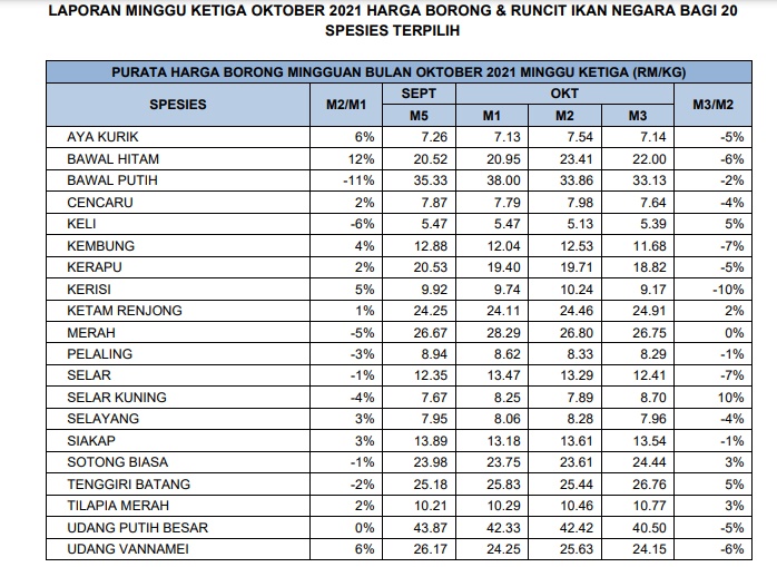 但其实大马渔业发展局每周都会发布国内基本海鲜的渔市场的批发、零售价格。
