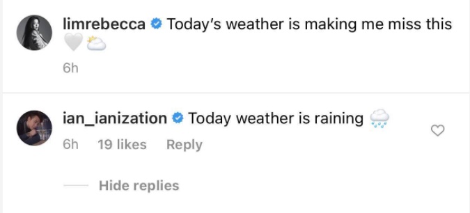 只是事有凑巧,林慧玲在IG上载:“Today’s weather is making me miss this 🤍🌥。”;方伟杰则贴文:“Today weather is raining🌧。”,相对应贴文又让网民有许多联想,唯这贴文同样被方伟杰事后删除。