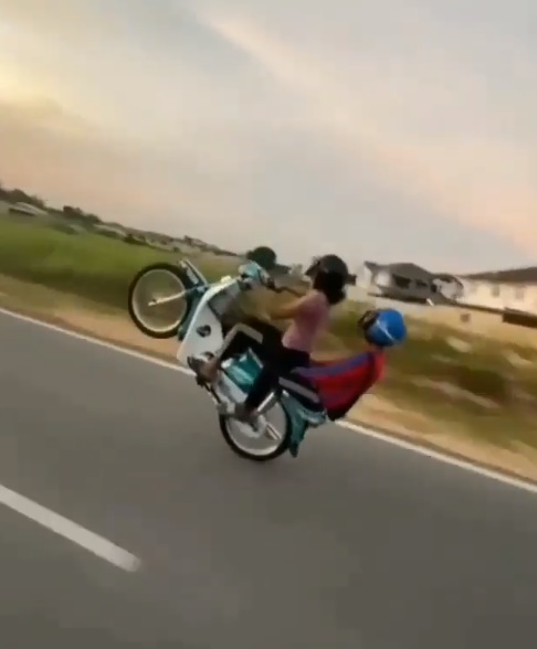 (峇株巴辖22日讯)姐姐也疯狂,载着少年公路“耍特技”飙摩哆,还拍视频“展英姿”,结果警察找上门!