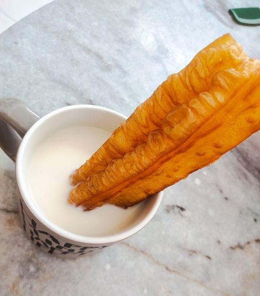 居銮油条配豆浆、Kopi-O,再来煎堆、咸煎饼,香脆可口,齿颊留香。