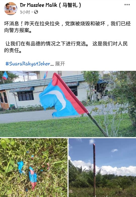 柔佛州选2月26日才提名,短短三天便一再传出宣传看板、竞选旗子等被破坏事件。