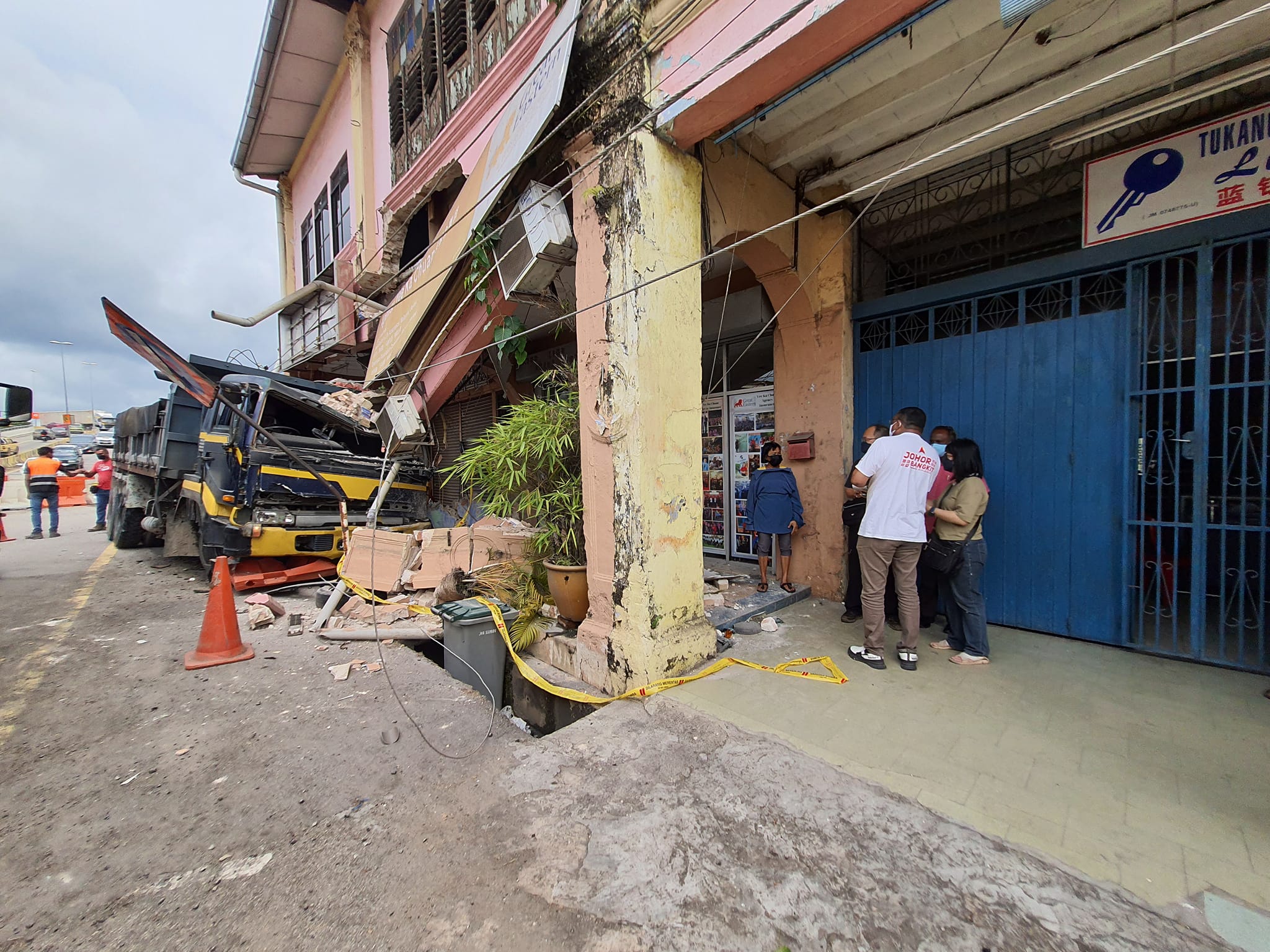 今日上午10时50分,在拉美士道路规划(ROB08)工程临时道路,发生一辆罗厘煞车器失灵,猛撞店屋事件。