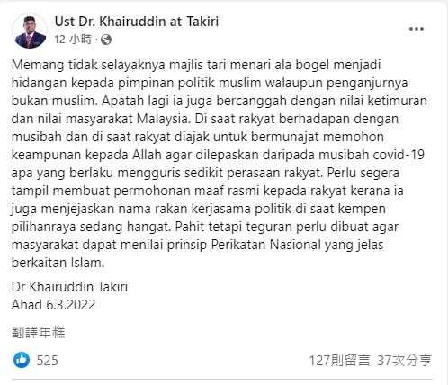 对此,凯鲁丁认为,即使晚宴是非穆斯林主办,但性感舞蹈的演出,不应该出现在以穆斯林政治领袖为主宾的场合。