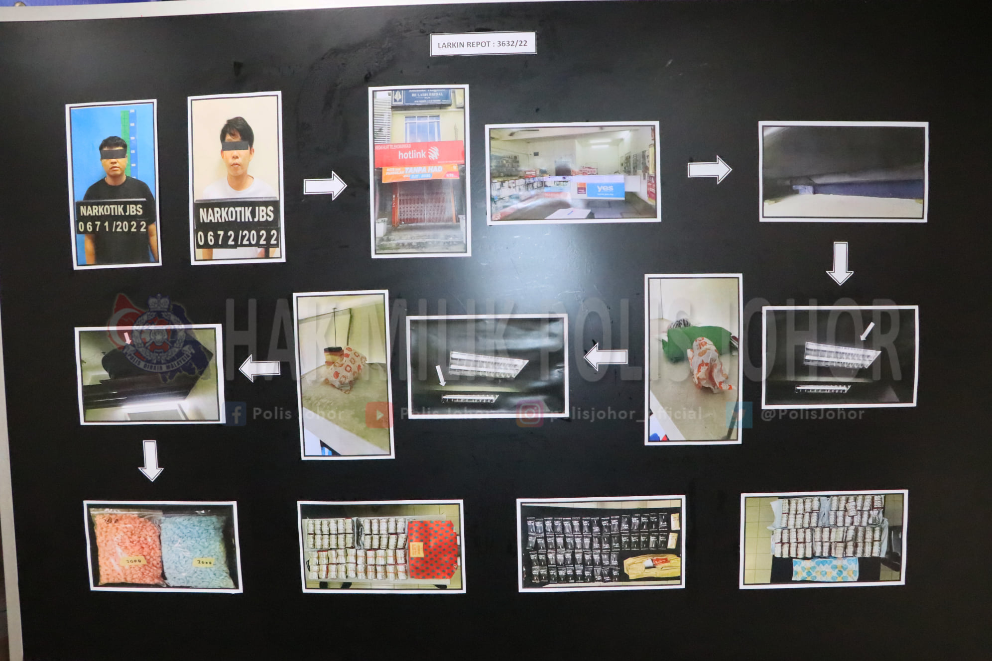 柔州总警长拿督卡马鲁查曼昨日在记者会上指山,位于新山拉庆的一间手机店,竟是毒品仓库,自去年起便偷偷运作,主要供应给本地市场。