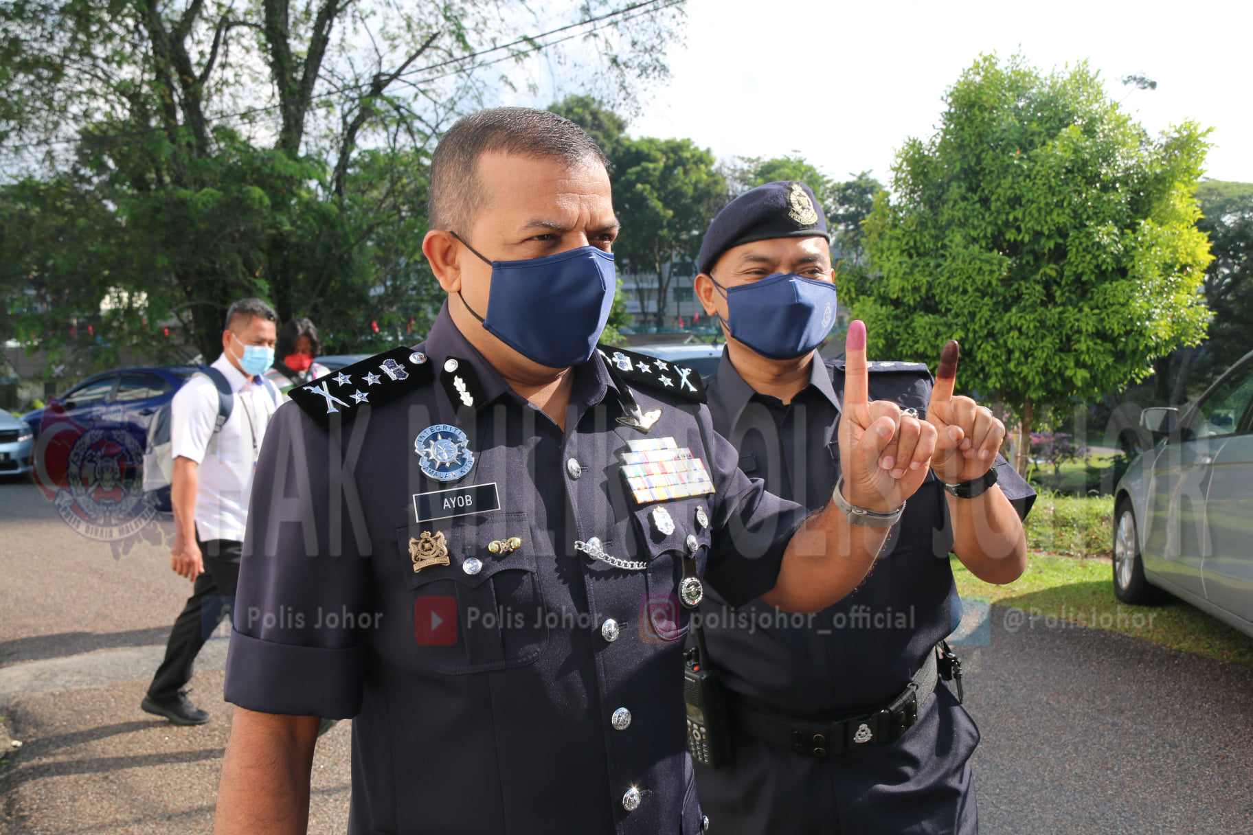 柔佛前总警长(现任武吉阿曼肃毒局总监)拿督阿育甘也特地南下投下神圣一票。
