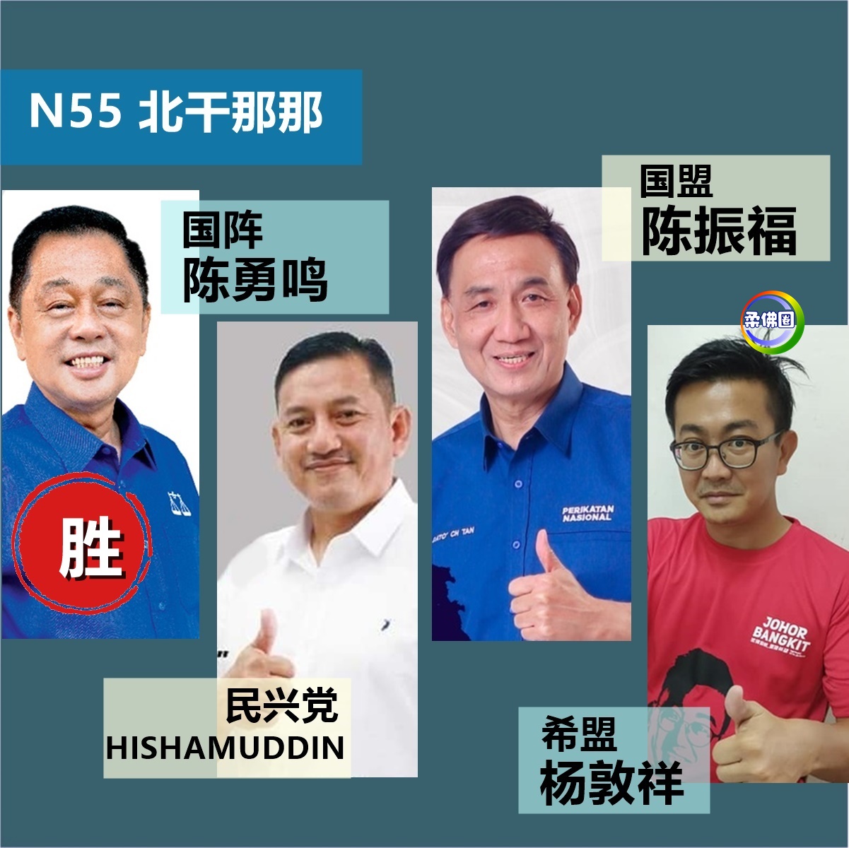 另外,证实马华候选人陈勇鸣获得逾50%选票,在北干那那州席中选后。行动党原任北干那那议员杨敦祥也在面子书恭贺陈勇鸣。