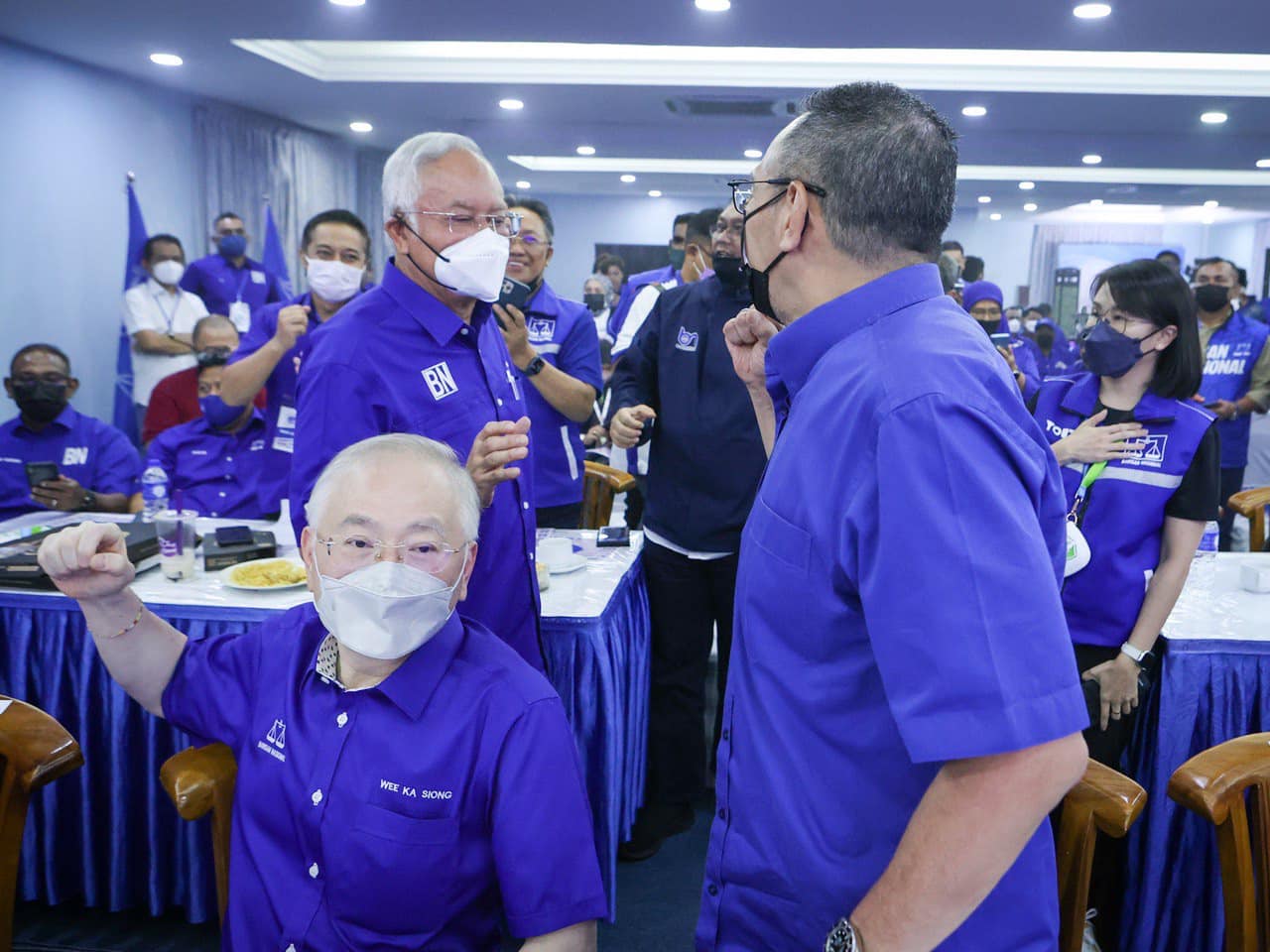 另外,在国阵胜选后,巫统主席拿督斯里阿末扎希、巫统署理主席拿督斯里莫哈末哈山、“Bossku”前首相拿督斯里纳吉、首相拿督斯里依斯迈沙比里皆亮相。