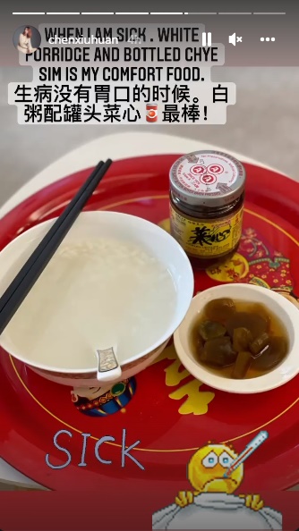 (新加坡13日讯)艺人陈秀环确诊新冠肺炎,症状明显,不仅睡不好,也没胃口,只吃白粥菜心。