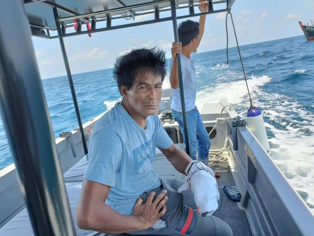 事主是46岁的阿兹米,其拖网渔船在丹绒大素里里以东10.8海里的海域时,疑拉网时手指被卡住,以致一根手指被切断,寻求援救。