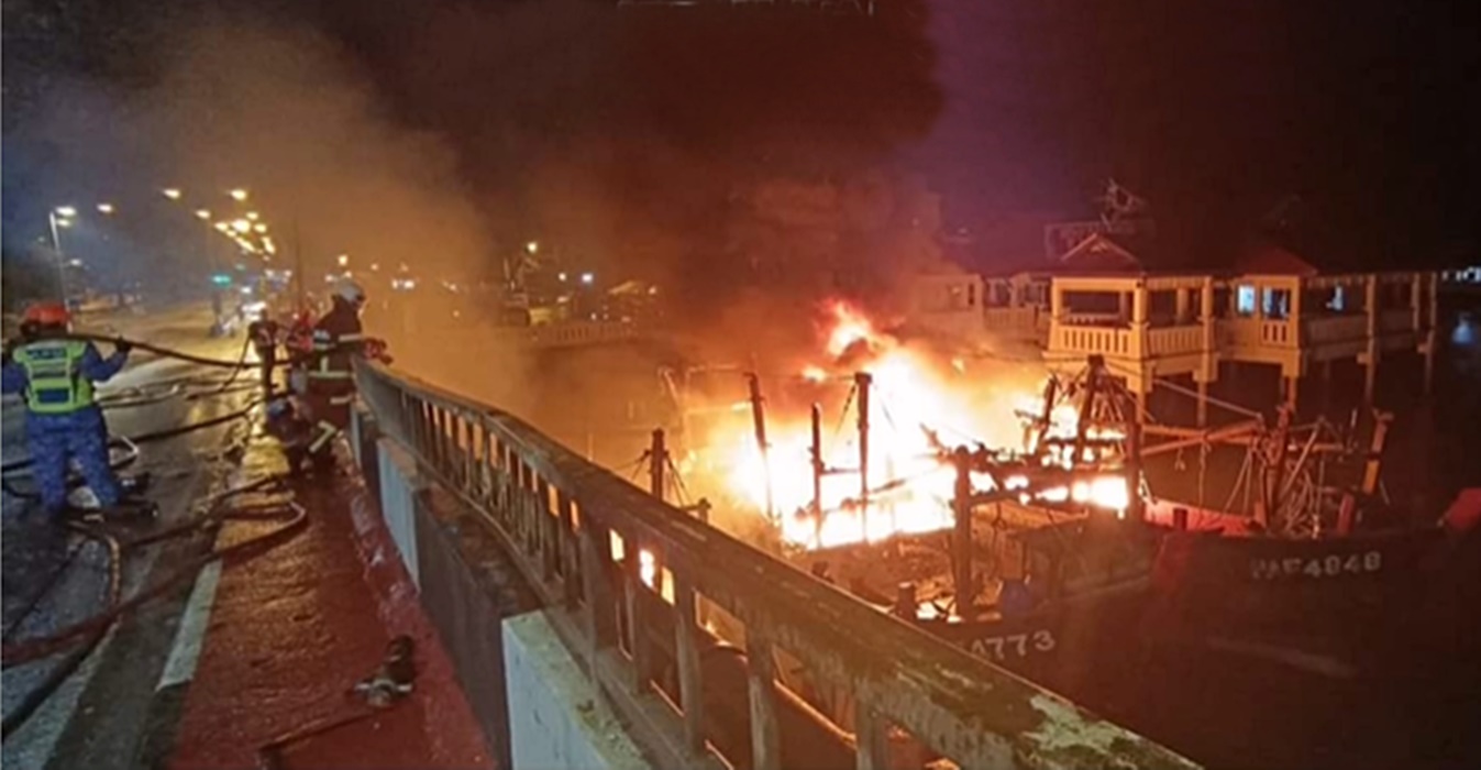 兴楼消拯局局长莫哈末艾利斯文告透露,兴楼丹绒哥莫码头火烧船,调派了3辆消拯车、一辆水槽车和一辆紧急医药援救服务救护车赶到现场灭火。