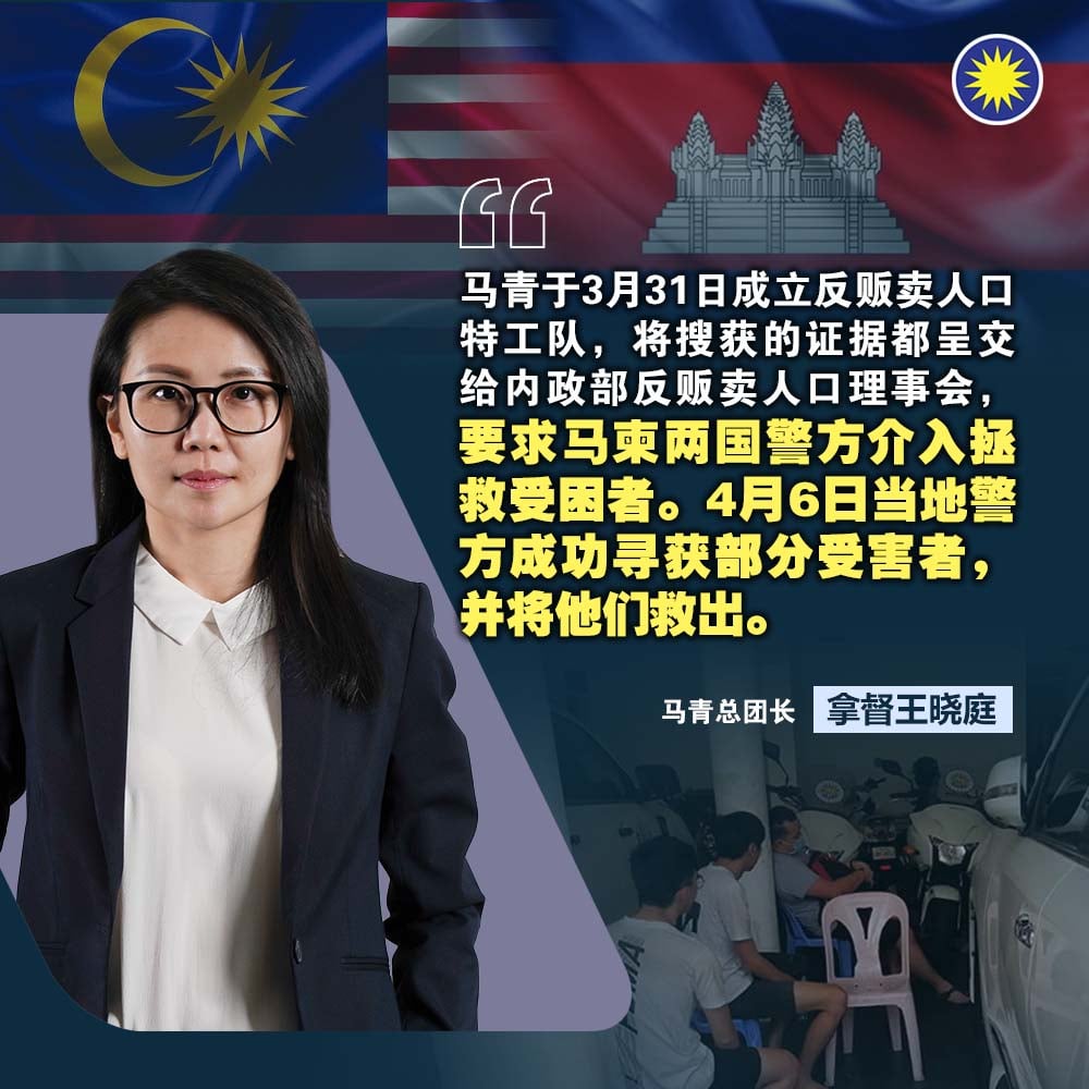 “马青于3月31日成立反贩卖人口特工队,并将连日来搜获的证据都呈交给在内政部反贩卖人口理事会(MAPO),要求马柬两国警方即时介入拯救受困者。”