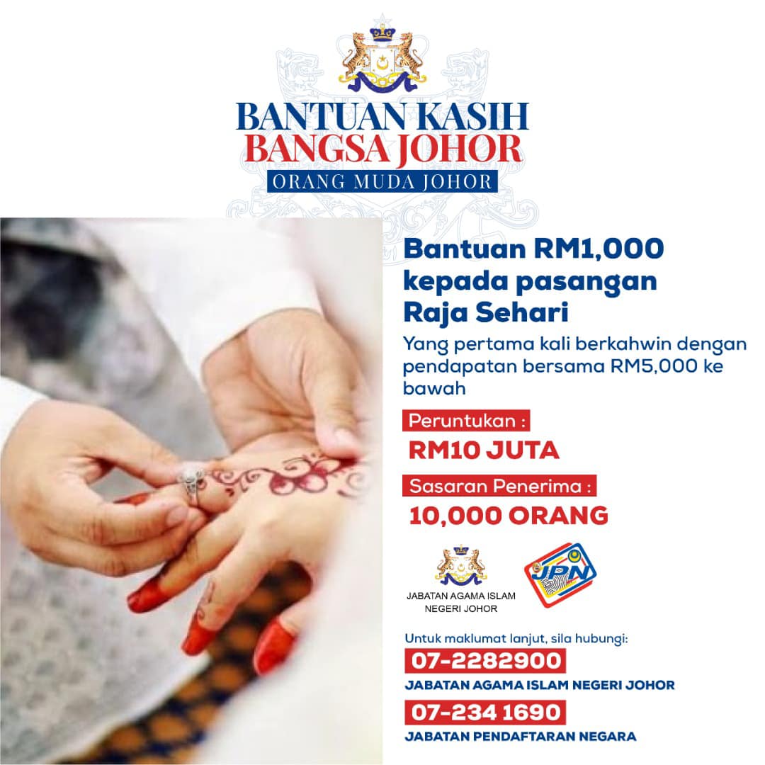 ●新婚夫妻两人月薪5000令吉以下,可获1000令吉援助。唯只适用于首次结婚者。