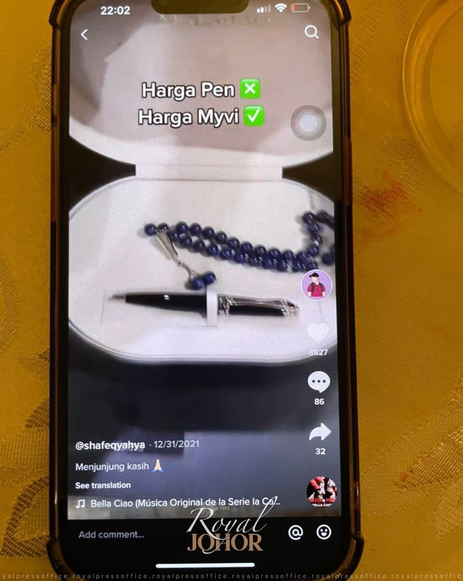根据柔佛王室(The Royal Johor)面子书贴文,有关网民亮出数个王宫赐礼,并指“虽很小但很值钱”,甚至指所获得的笔价值等同一国产Myvi轿车。