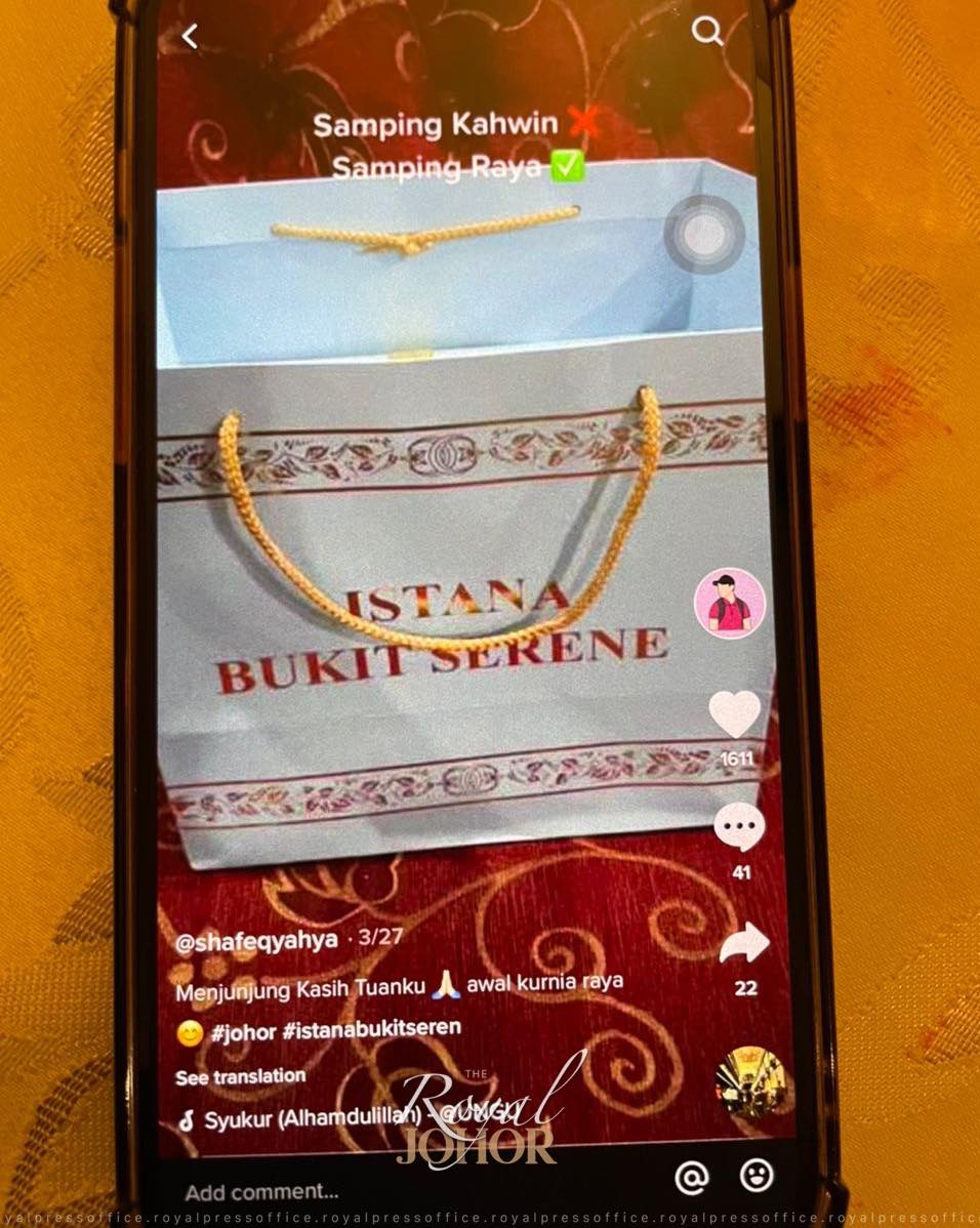 “不知道这个shafeqyahya是谁,但有感这些礼物似乎被滥用,以便社交媒体上获得更多追随者和知名度,并制造似乎与柔佛王室关系密切的假象。”