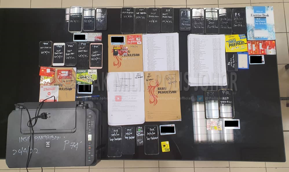 警方也起获的物品有23台手机、13张SIM卡、9张提款卡、记录本、借贷表格、借贷记录等等。