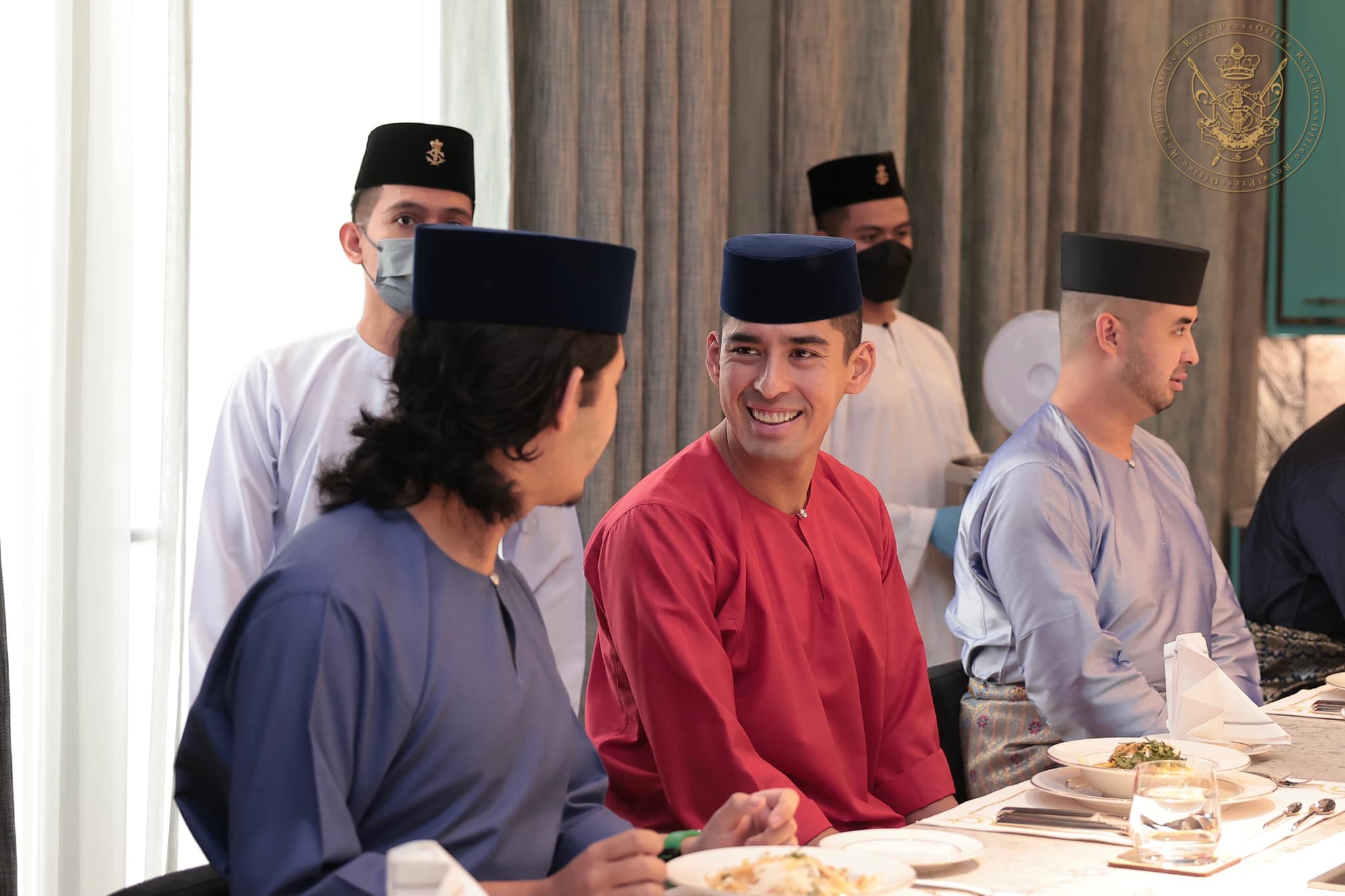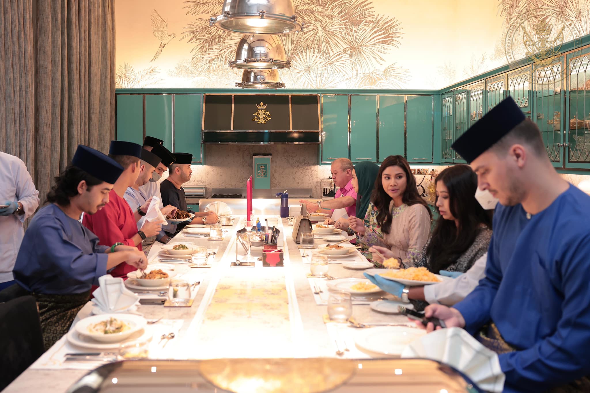 柔佛苏丹与王后拉惹查丽苏菲雅;王储东姑依斯迈和王储妃凯丽达,与2儿2女;公主东姑敦阿米娜和夫婿拿督丹尼斯,与1儿1女;二王子天猛公东姑依德利斯、四王子东姑阿都拉曼、五王子东姑阿布峇卡,全员共聚一堂用餐。