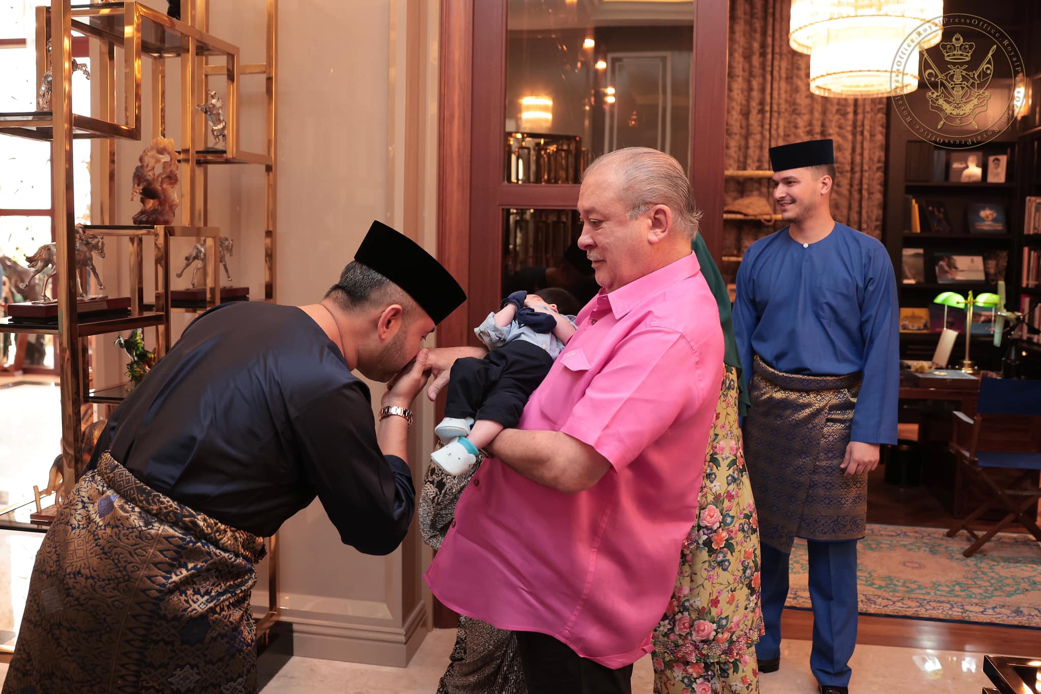 只见柔佛苏丹和王后仍不时抱着刚出世的外孙,即公主的第二名孩子疼惜。