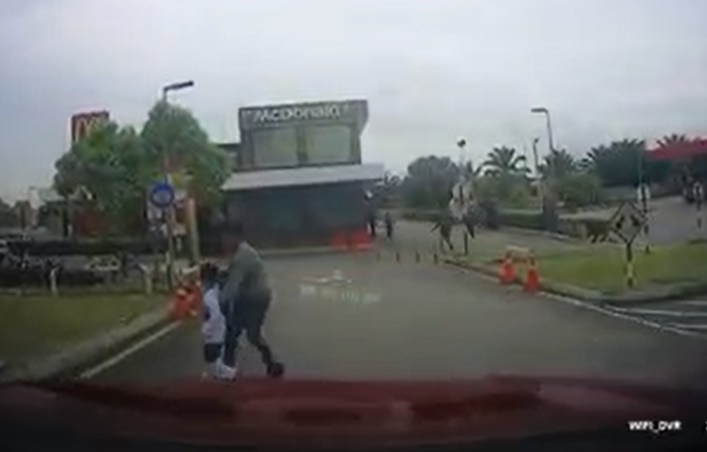 之后歹徒被指强拉着男童进入快餐店前范围,热心民众趋前伸援手,最终男子被迫到墙角瘫坐地上,接受警员盘问。