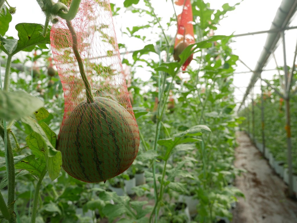他指出,温室种植迷你西瓜,不但节省空间,也可躲避气候带来的不稳因素,如淹水等,能更好控制西瓜的品质和收成。