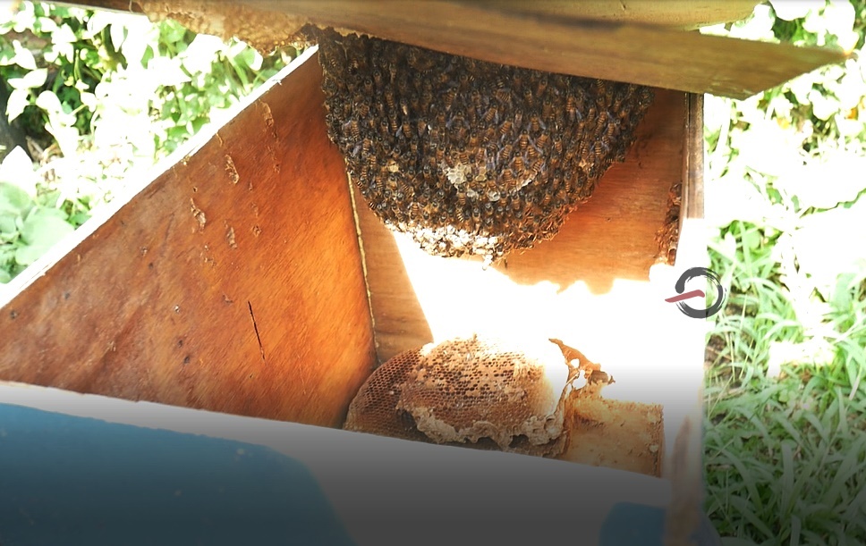 “蜜蜂帮忙将公花的花粉传授到母花上,母花才能受孕结果。”因此,果园处也有养蜂帮忙工作。