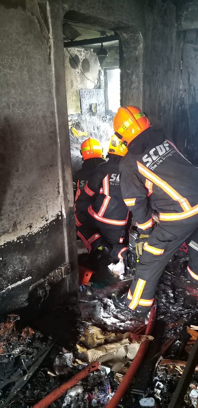 民防部队指出,起火单位有许多易燃物,同时卧室多杂物,必须强行入内展开救援工作。