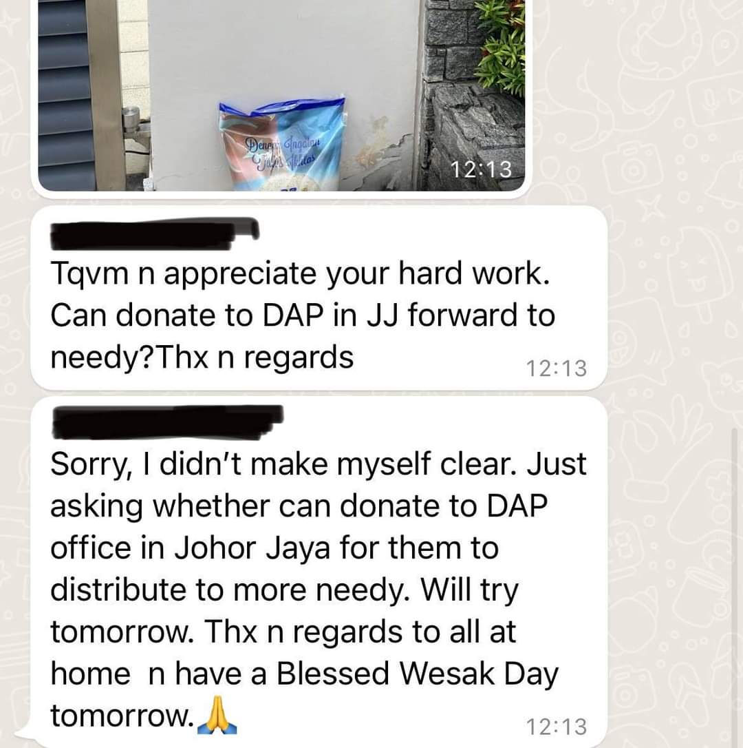 民主行动党柔佛再也区州议员廖彩彤今天指出,前几天办事处收到了一位善心人士的捐赠。