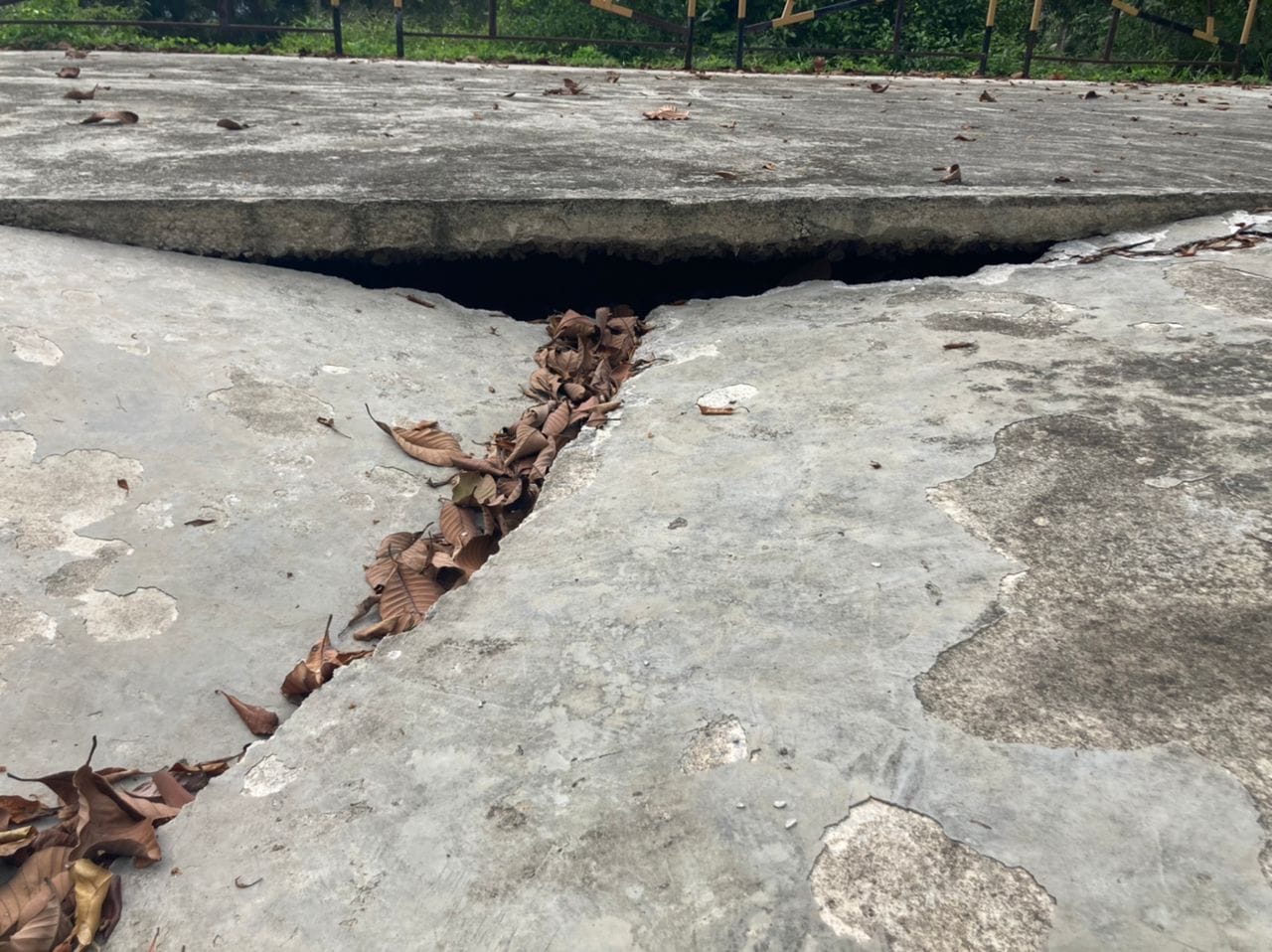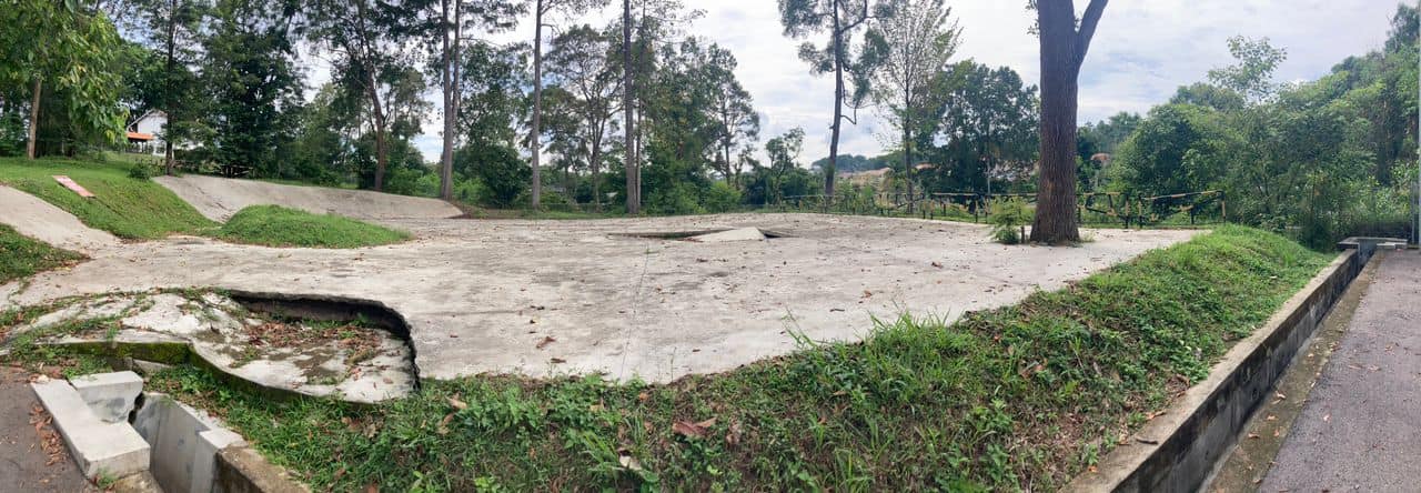 他日前下午到已荒废的“居銮极限公园”现场勘察,发现这项2018年初的项目,在耗资数十万甚至上百万之后,石灰平台已经坍塌、木制平台腐朽穿洞,同时广场则有两处崩塌,并露出底下空洞的地基,