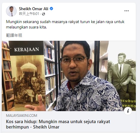 较早前,行动党中委谢奥马曾是希盟执政时的柔州行政议员,他日前接受媒体访问并在面子书上公开说:“也许现在是人们走上街头,大声呼喊的时候了。”