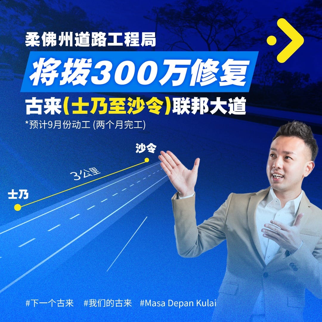 柔佛州务大臣华人特别事务官蔡建文日前指出,柔佛道路工程局将获300万令吉拨款,以进行道路维修与提升工程,所以由士乃─沙令的联邦大道,总长约3公里。