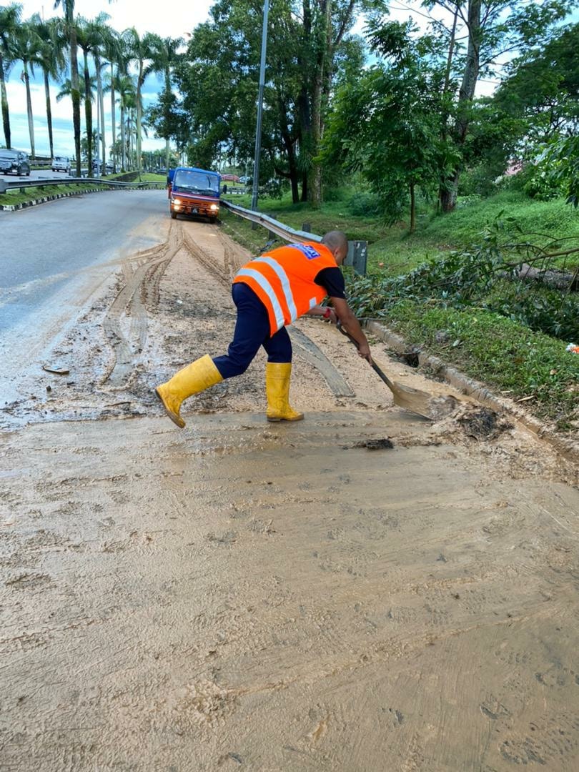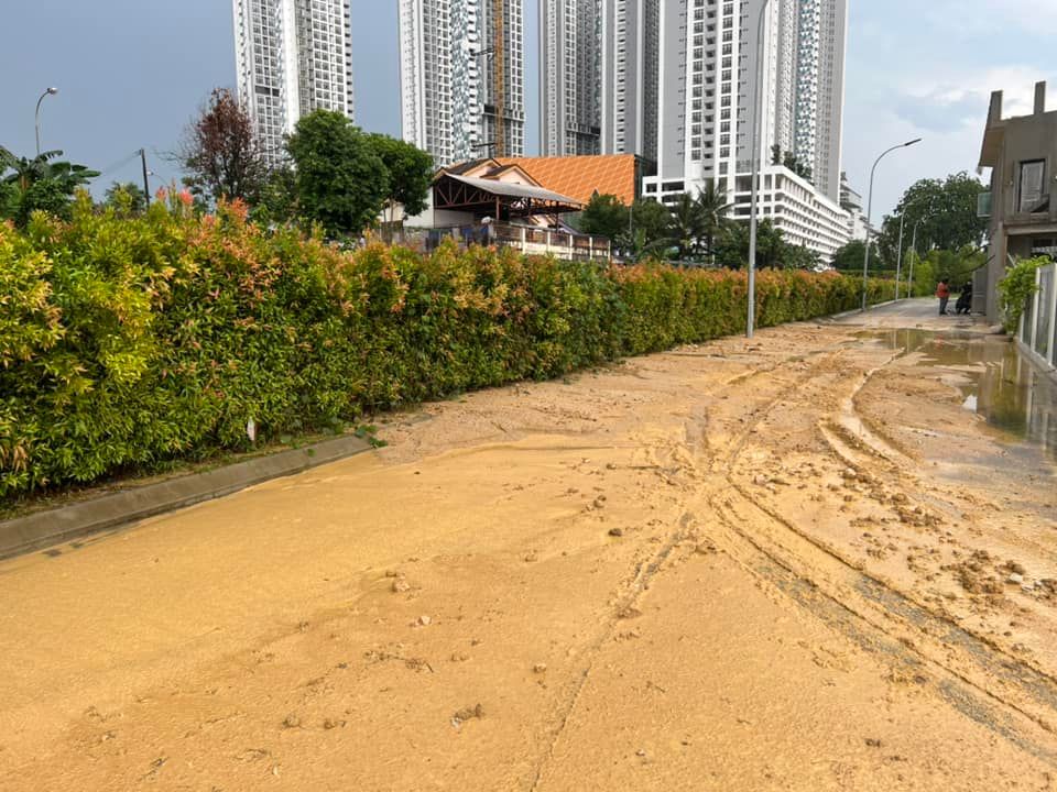 陈传平指出,这是因为水务公司(SAJ)置放大水管工程的影响,以致今天下午一场大雨把泥浆都流入至达城Bayu区的道路。