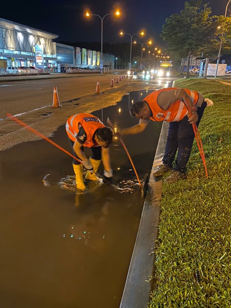 新山市政厅的“闪电小组”也在傍晚至黑幕降临时分,在巴西古当大道淹水处清理黄泥和水沟。