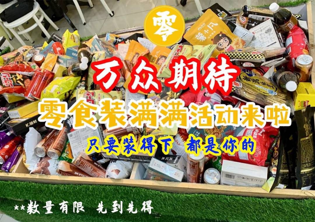 同时,为了满足爱吃零食的朋友,现在更推出“零食装满满”活动,有大、中、小的价格,可以拿到满满,吃得过瘾。