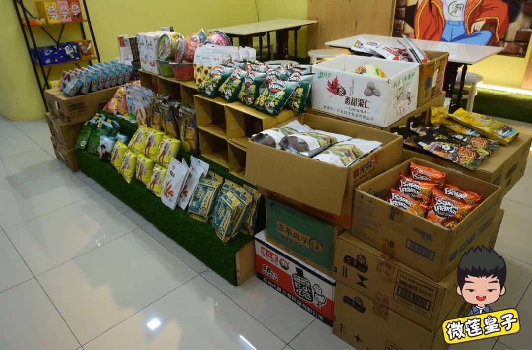 店里也有零食小卖部,有300多种零食饮料,还有自热火锅和泡面。琳琅满目网红零食,甚至可以包装成礼包送给亲友,有RM9.90、RM19.90、RM59.90和RM99.90。