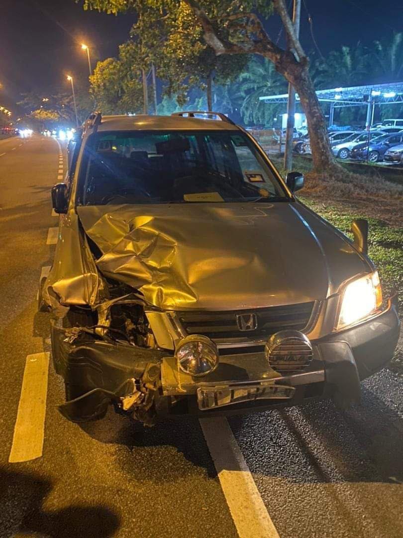 警方初步调查,事发时Honda CRV轿车在红灯时没有停车,反而从Abdul Rahman路直驶往Haji Kosai,结果直接撞上摩哆。
