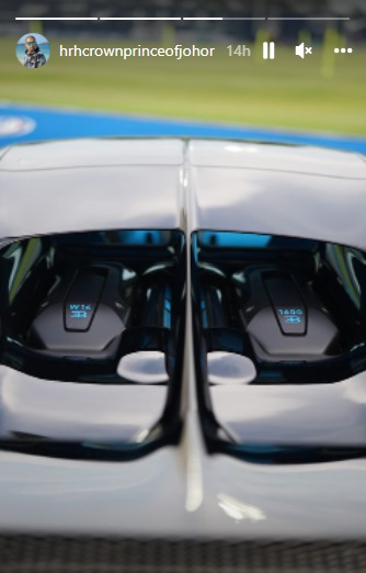 柔佛王储昨日在Instagram上载私藏爱车的照片和视频,是去年6月全球首发的Bugatti Chiron Super Sport。去年8月,网上也因王储上载的照片,揣测王储是车主之一。