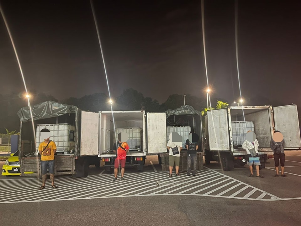(新山28日讯)4辆罗厘载有2800公升柴油,竟还跑去添油,5华裔和1巫裔男子被捕。