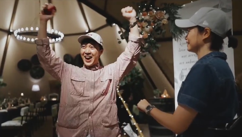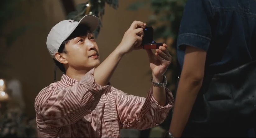 从视频可见,求婚场地在夜间野生动物园里的一个帐篷,亲友包括演艺圈的周初明、朱厚任、陈泰鸣等也都出席,见证这一刻。